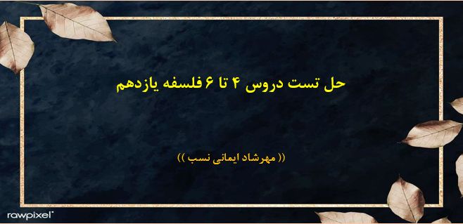 در این بخش قصد داریم دروس 4 تا 6 فلسفه یازدهم را از طریق حل تست ، مرور و بازیابی کنیم .