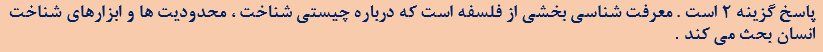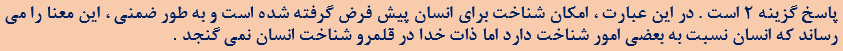 3-عبارت (( چیستی و ذات خدا را هیچ گاه نمی توان شناخت )) به کدام یک از حیطه های معرفت شناسی اشاره دارد ؟