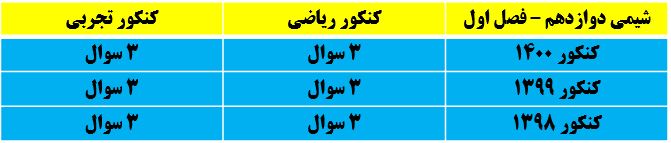 بودجه بندی فصل اول شیمی 3 در کنکور سال های اخیر