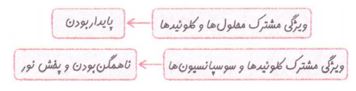 کلوئیدها و سوسپانسیو نها جزء مخلوطهای ناهمگن هستند. ذره های سازنده این مخلوط ها، درشت تر از محلول ها است، به همین دلیل برخلاف محلولها نور را پخش می کنند.