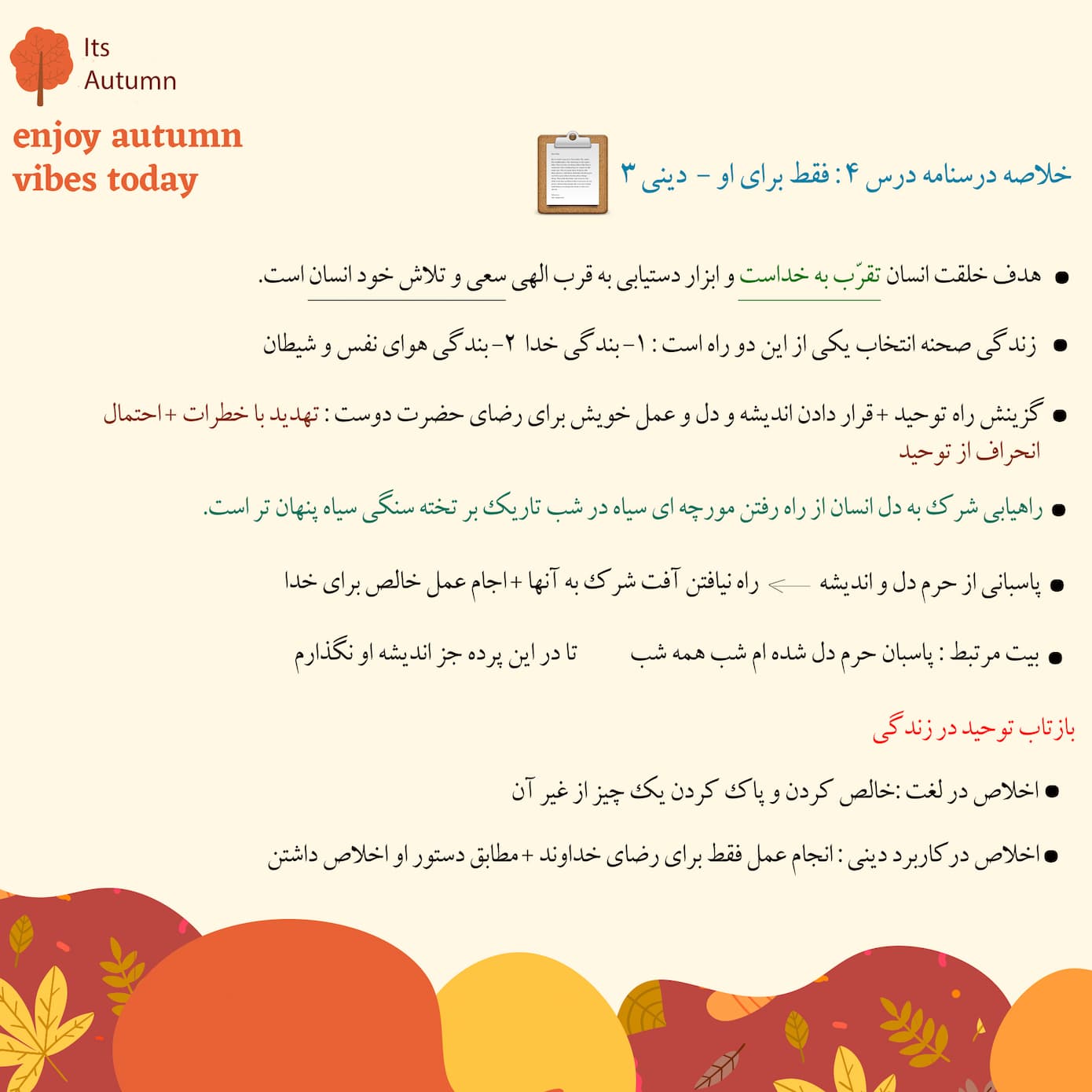 درسنامه درس 4 دین و زندگی 3 - فقط برای او