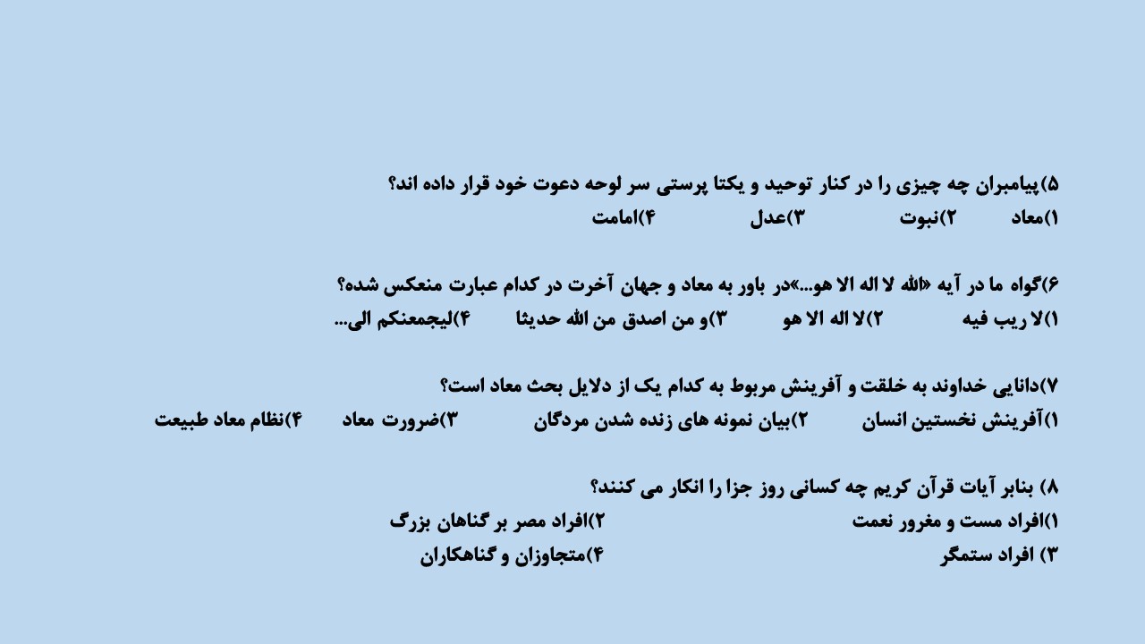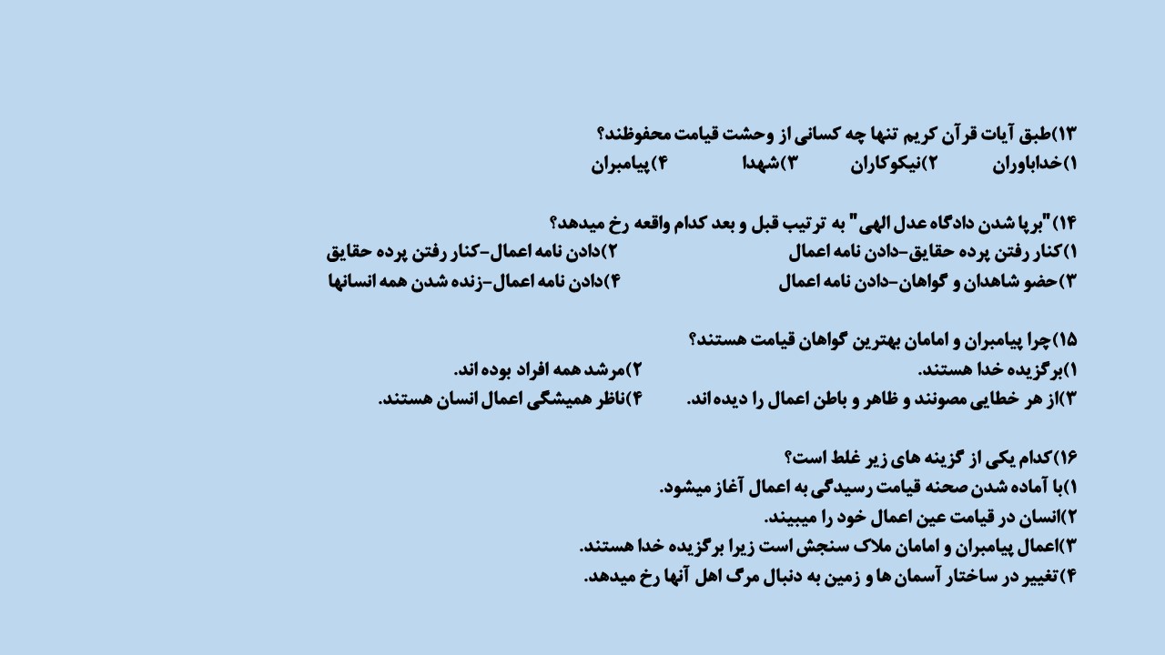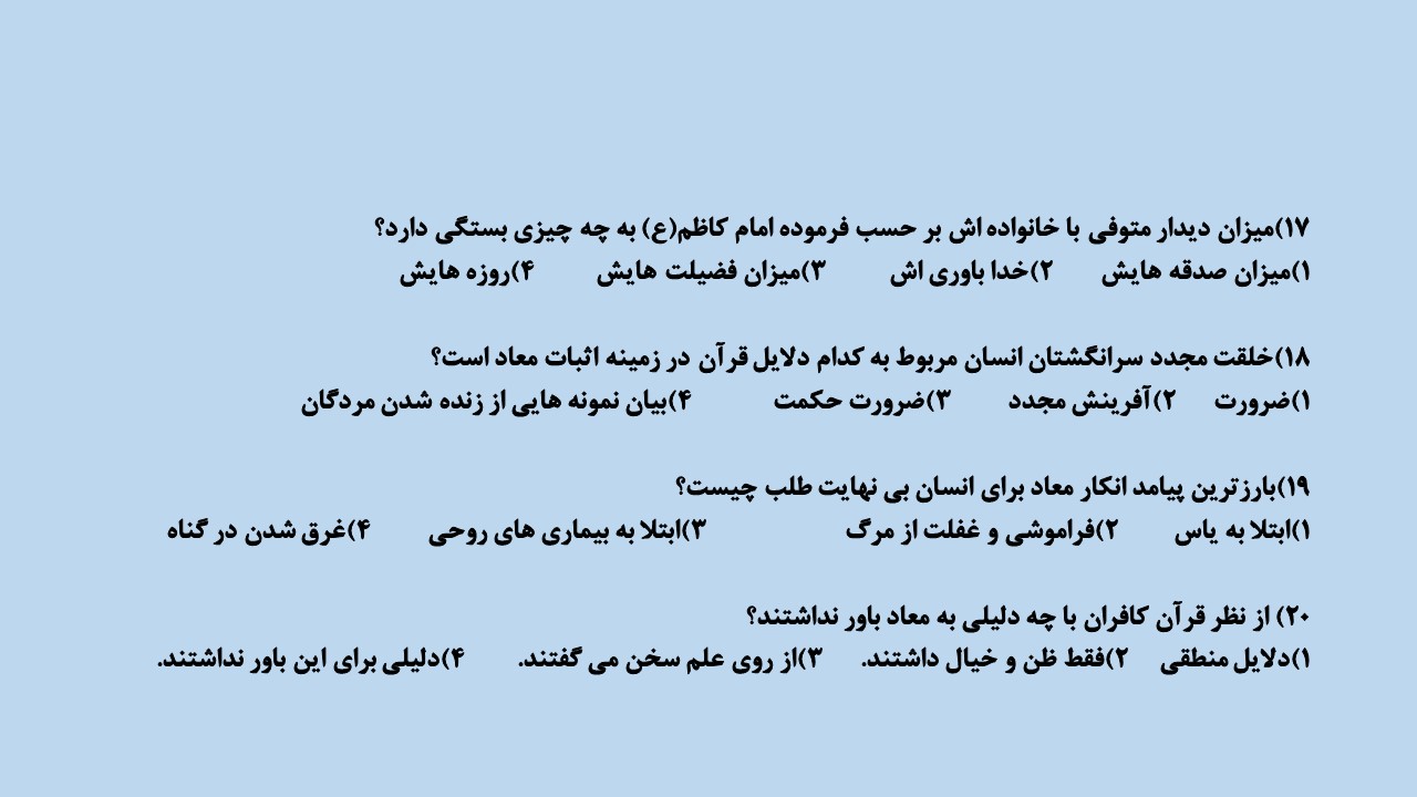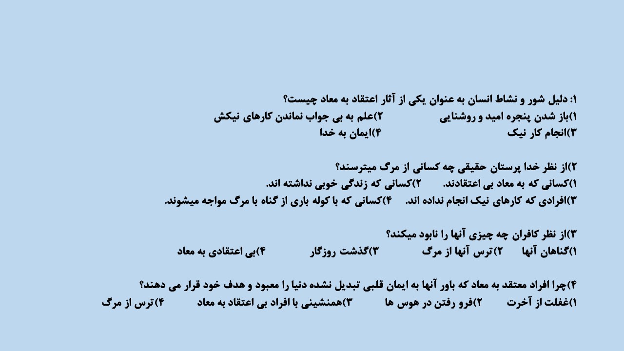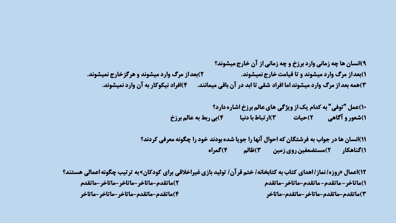 در این مطلب قصد داریم سوالات تستی درس چهار تا هفت دینی دهم را با هم بررسی کنیم .