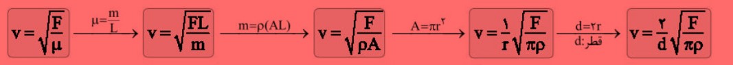2- چگالی خطی جرم در یک سیم که در ساز موسیقی بکار رفته 0/004 کیلوگرم بر متر است و این سیم بین دو نقطه با نیروی 250 نیوتن کشیده شده است اگر بسامد صوت حاصل از ساز 312/5 هرتز باشد طول موج ایجاد شده در آن چند متر است؟