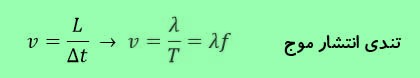 تندی انتشار موج A اگر جبه موج در مدت زمان Δt مسافت L را طی کند تندی انتشار موج از رابطه زیر به دست می آید. از آنجا که طول موج λ در دوره T طی می شود داریم: