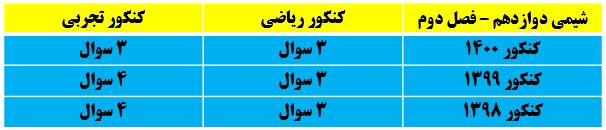 بودجه بندی فصل دوم شیمی 3 در کنکور سال های اخیر