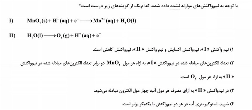 توجه: در این واکنش به ازای هر مول فلز 2 مول الکترون مبادله می شود.