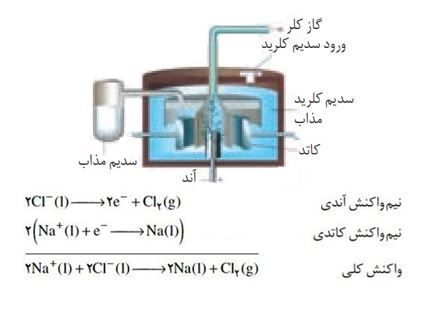 در صنعت فلز سدیم را از برقکافت سدیم کلرید مذاب در یک سلول الکترولیتی به نام سلول دانز که به شکل زیر است، تهیه می کنند.