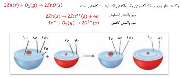 هر یک از فرآیندهای گرفتن و از دست دادن الکترون با یک نیم واکنش نشان داده می شود. بنابراین هر واکنش اکسایش – کاهش شامل دو نیم واکنش (نیم واکنش اکسایش و نیم واکنش کاهش است).