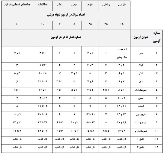 نمونه فصل کتاب سال نهم ( سوالات نمونه دولتی نهم)