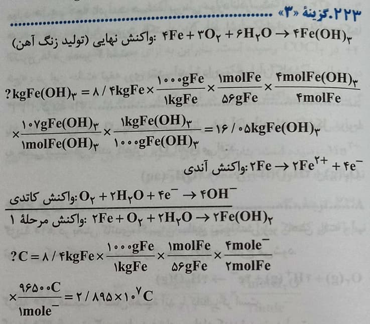 زنگ آهنFe(OH)3 می باشد.در این فرآیند ابتدا Fe+2تشکیل می شود و سپس به Fe+3 تبدیل می شود.