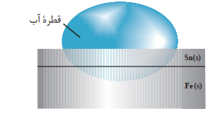 شکل زیر بخشی از یک ورقۀ آهنی را نشان میدهد که با لایۀ نازکی از قلع پوشیده شده است. به این نوع آهن، حلبی میگ ویند. از ورقه های حلبی برای ساختن قوطی های روغن نباتی و کنسرو استفاده می شود.