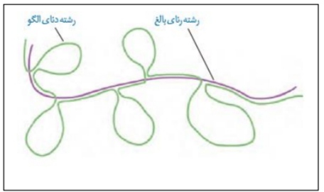 *رشته سبز رنگ همان رشته دنای الگوست، بنابرین شامل اینترون و اگزون می باشد.