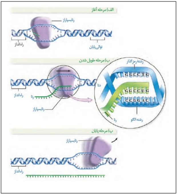 *به طور کلی رونویسی شامل سه مرحله آغاز،طویل شدن و پایان می باشد.