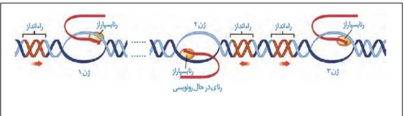 *جهت حرکت رنابسپاراز (جهت رونویسی) و جهت خروج رشته رنای تازه ساخته شده، کاملا برعکس هم می باشد.