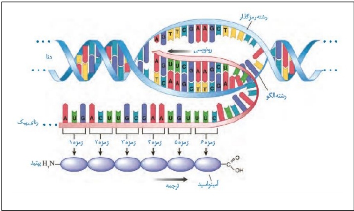 *شکل پایین نشان دهنده رونویسی و سپس ترجمه می باشد.