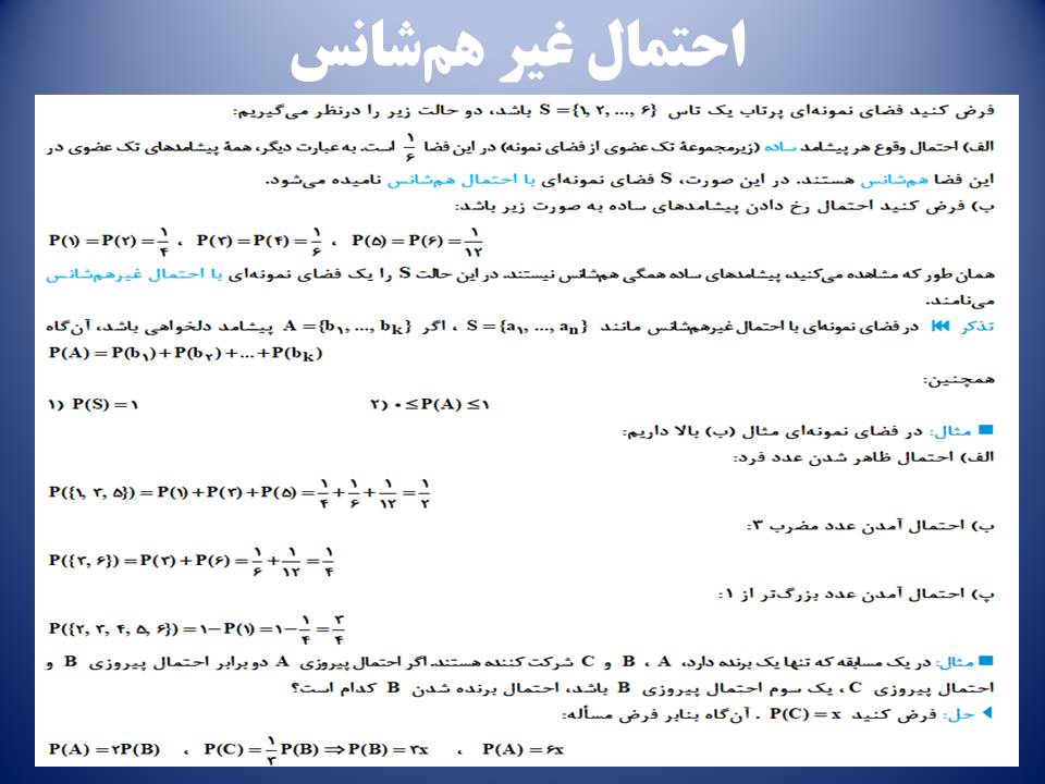 احتمال- مبانی احتمال و احتمال غیرهمشانس-لیلا نورانی