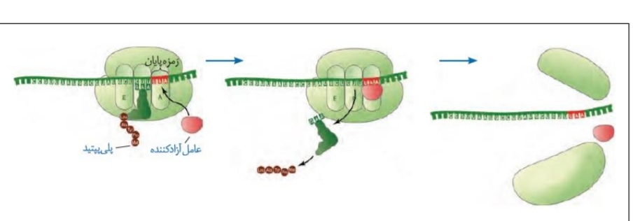 *واضح است که در مرحله پایان هیچ رنای ناقلی وارد جایگاه A نمی شود و آخرین رنای ناقل از جایگاه P خارج می شود.