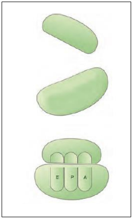 *همانطور که در شکل قبلی هم گفتیم، در ساختار کامل ریبوزوم سه جایگاه E/P/A دیده می شود. در مرحله آغاز تنها زیرواحد P اشغال شده است.