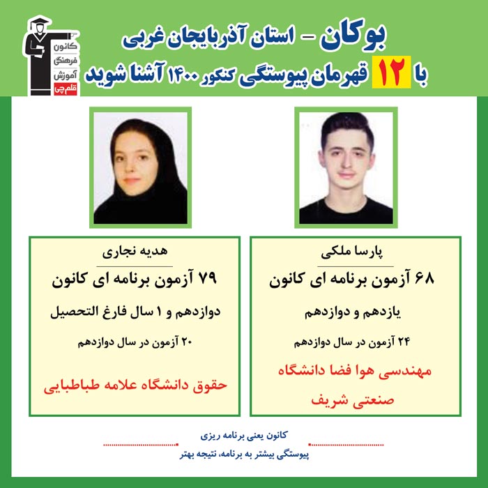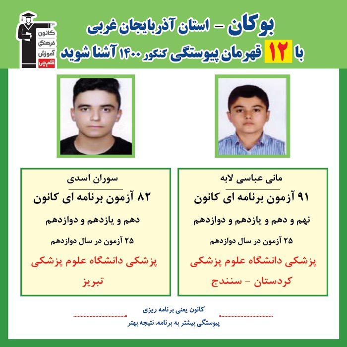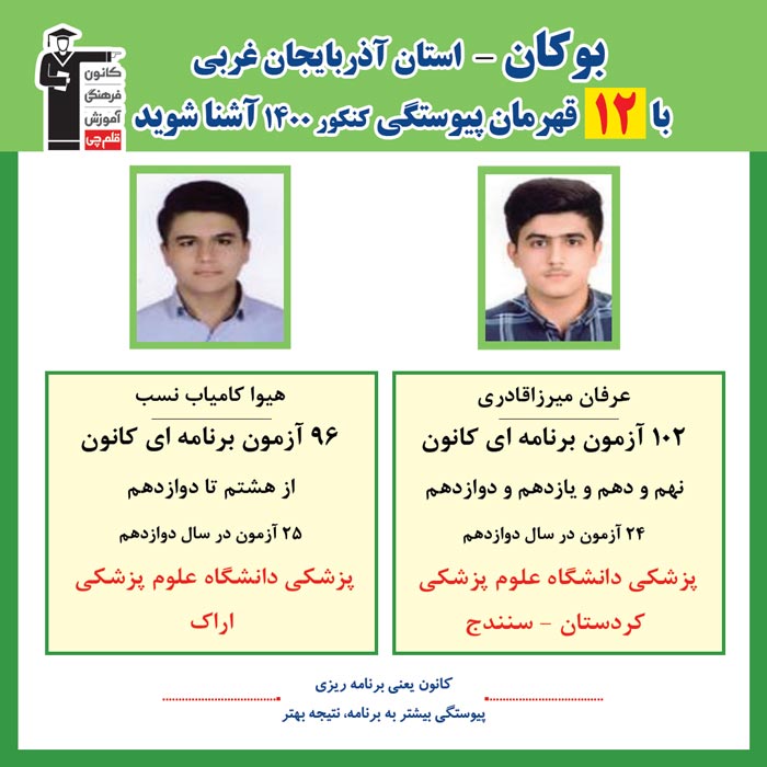 با قهرمانان پیوستگی شهر بوکان درکنکور 1400 آشنا شوید