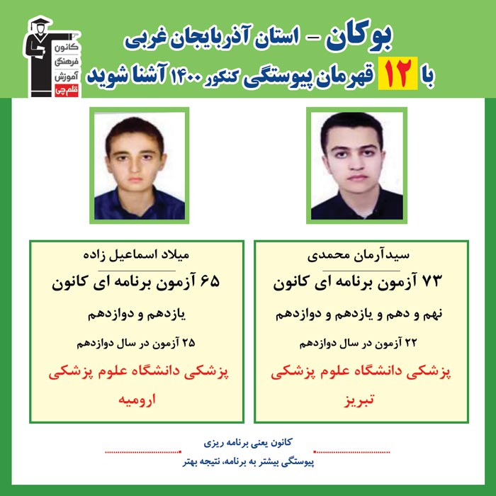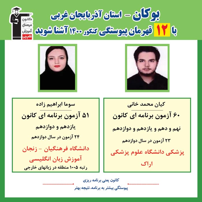 با 12 نفر قهرمانان پیوستگی بوکان درکنکور 1400 آشنا شوید
