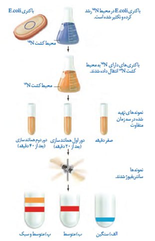 *بعداز چندین دور همانندسازی که باکتری ها دارای نیتروژن15 شدند، آنها را وارد محیط کشت حاوی نیتروژن
