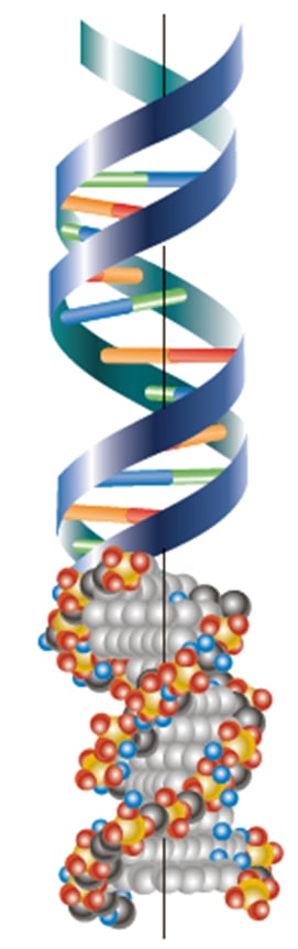 *واتسون و کریک با استفاده از نتایج آزمایش های چارگاف،داده های حاصل با پرتوی ایکس و یافته های خود، مدل مولکولی نردبان مارپیچ برای دنا را پیشنهاد داده اند.