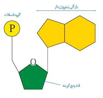 *هر نوکلئوتید از یک یا چند گروه فسفات، یک قند 5 کربنه و یک باز آلی تشکیل شده است.