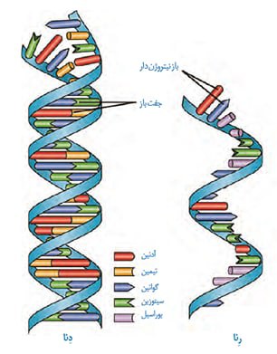 *پورین ها شامل آدنین و گوانین و پیریمیدین ها شامل تیمین، یوراسیل و سیتوزین می باشد.