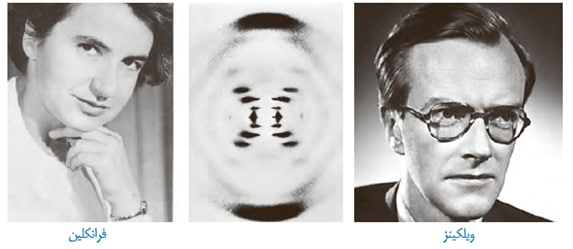 *ویلیکینز و فرانکلین با استفاده از پرتوی ایکس، از مولکول دنا تصاویری تهیه کردند که نتایج مهمی در بر داشت.