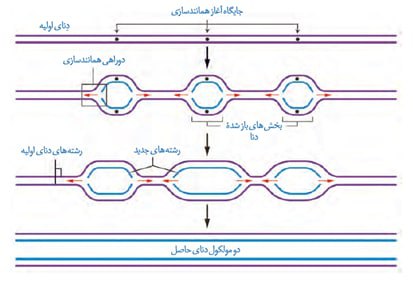 *دقت کنید لزوما سرعت همانندسازی در حباب های مختلف با یکدیگر برابر نیست!