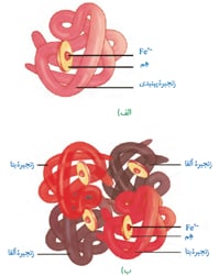 *شکل الف نشان دهنده میوگلوبین و شکل ب نشان دهنده هموگلوبین می باشد.
