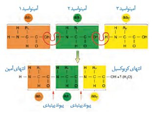 *مطابق شکل، تعداد آمینواسید ها یکی بیشتر از تعداد پیوندهای پپتیدی می باشد.