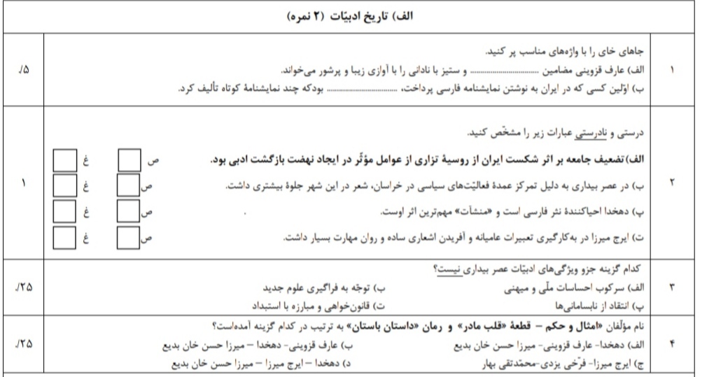 این مطلب شامل نمونه سوالات امتحانی درس علوم و فنون ادبی دوازدهم همراه با پاسخنامه تشریحی است. سوالات را حل کنید و سوالات خودتان را در قسمت کامنت بنویسید.