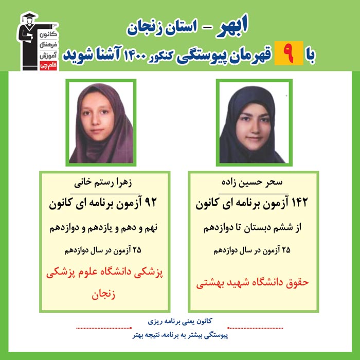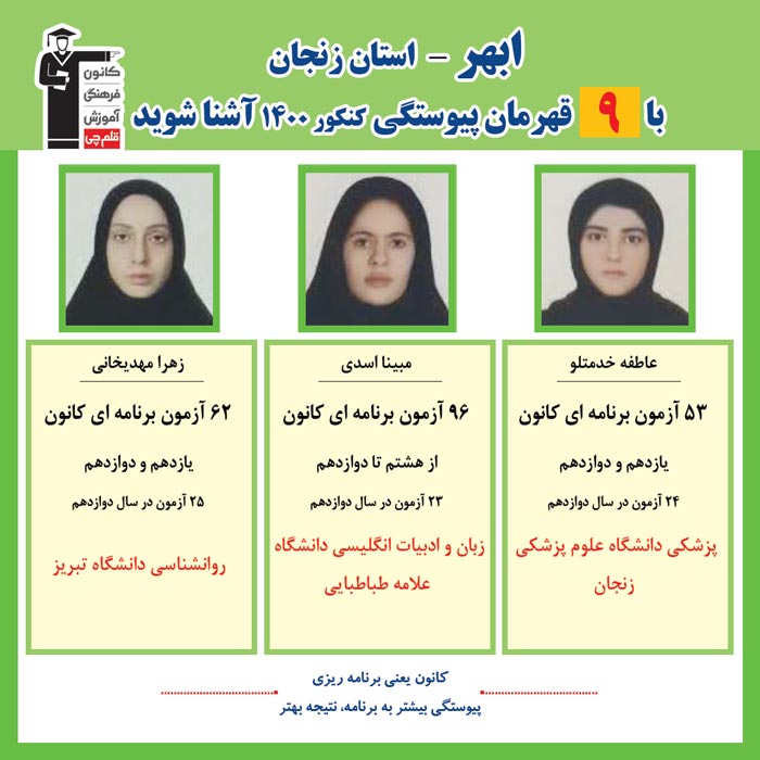با قهرمانان پیوستگی شهر ابهر در کنکور 1400 آشنا شوید