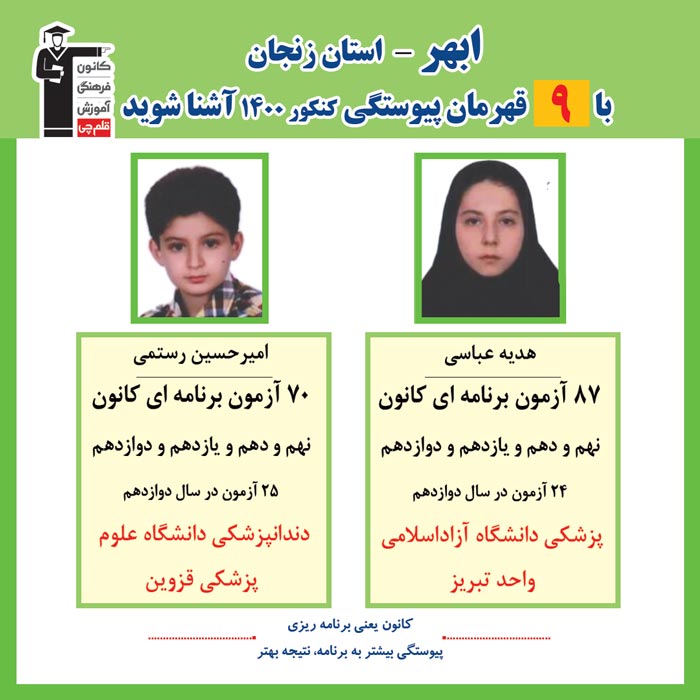 با 9 نفر قهرمانان پیوستگی ابهر در کنکور 1400 آشنا شوید