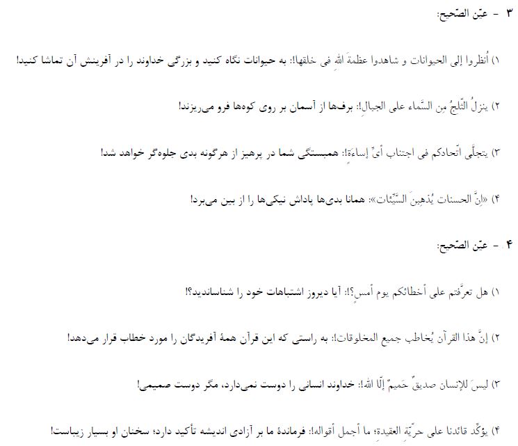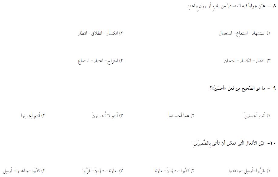 10 سوال عربی دهم که در ادامه برای شما قرار دادیم، از مباحث آزمون 8 بهمن بوده و برای آمادگی بیشتر شما در این آزمون توسط فاطمه احدزاده رتبه 373 رشته ریاضی سال 95 انتخاب و برای شما قرار داده شده است. بعد از مطالعه ی کتاب درسی و درسنامه های آمادگی آزمون 8 بهمن، توصیه میکنم حتما این سوالات را حل کرده و جواب های خود را با پاسخنامه بررسی کنید.