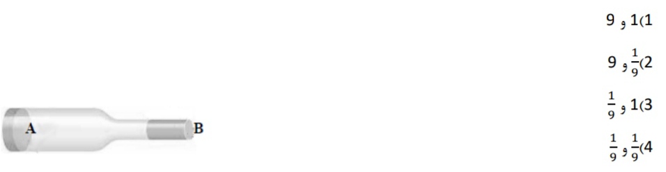 2)در شکل زیر جریان پیوسته ای از مایع درون لوله برقرار است. اگر شعاع مقطع A سه برابر شعاع مقطع B باشد ، به ترتیب از راست به چپ آهنگ جریان شاره و تندی شاره در مقطع A چند برابر B است؟