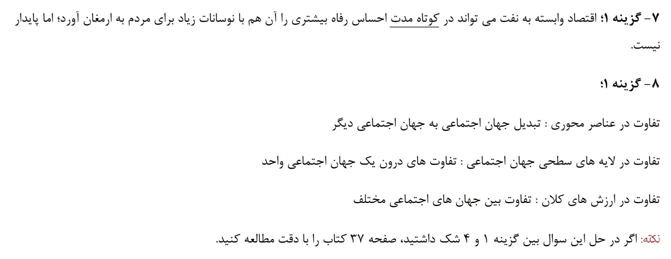 7- کدام یک در رابطه با اقتصاد وابسته به نفت درست نیست؟ (سراسری انسانی ۹۹)