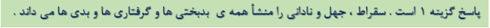 1)منشأ همه ی بدی ها و ناراستی ها ، نادانی انسان است .