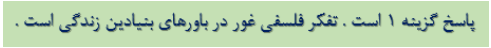 1-کدام مورد ، ویژه ی تفکر فلسفی است ؟ (کنکور خارج 1400)