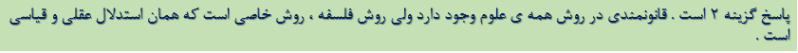 2)فلسفه مانند همه ی دانش های دیگر قانونمند است و با استفاده از روشی خاص ، مسائل خود را بررسی می کند .