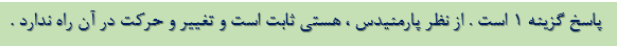 1-پارمنیدس از این استدلال که هستی از نیستی به وجود نمی آید و نیستی به هستی تبدیل نمی شود ، به کدام نتیجه می رسد ؟ (کنکور داخل 99)
