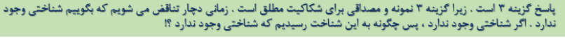 1-کدام عبارت به این سوال که (( چرا شکاک واقعی وجود ندارد ؟ )) پاسخ نمی دهد ؟ (کنکور خارج 98)