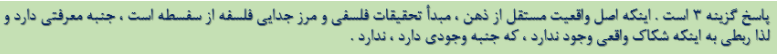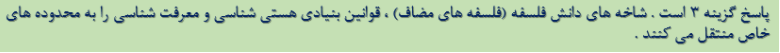 3-این واقعیت که (( حقایق فراوانی در عالم هست که آنها را نمی دانیم و نمی شناسیم )) به کدام یک از حیطه های معرفت شناسی مربوط است ؟ (کنکور خارج 99)