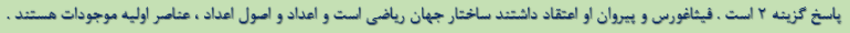 3-کدام عبارت بیان کننده اندیشه های فیثاغورس و پیروان او است ؟ (کنکور داخل 1400)
