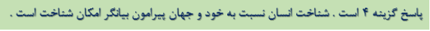 2-این عبارت که (( معلوم است که ما از خود و جهان پیرامون ، شناختی داریم )) به کدام یک از حیطه های معرفت شناسی مربوط است ؟ (کنکور داخل 99)