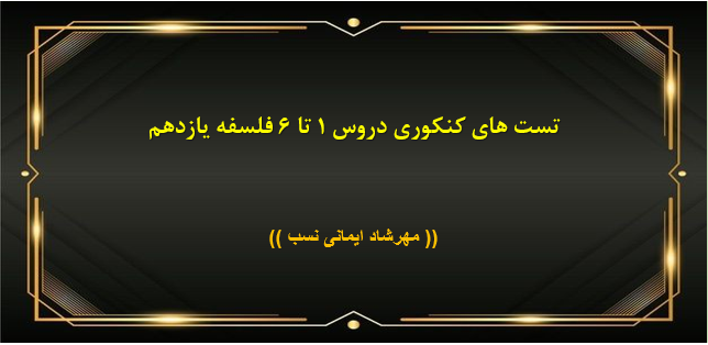 در این بخش قصد داریم به حل تست های کنکوری دروس 1 تا 6 فلسفه یازدهم بپردازیم .
