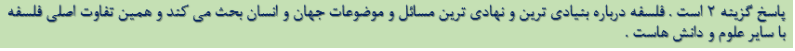 1-کدام مورد تفاوت اساسی فلسفه را با سایر علوم نشان می دهد ؟ (کنکور داخل 99)