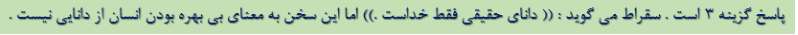2-سقراط در زمان خودش به دانایی مشهور بود . علت این موضوع به نظر او چه بود ؟ (کنکور خارج 98)