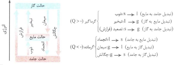 * انرژی یک ماده در حالت گاز بیشتر از حالت مایع و آن هم بیشتر از حالت جامد است.